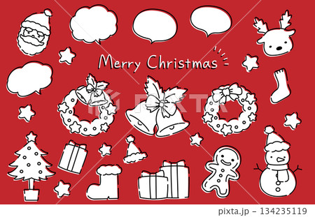 サンタや雪だるまのかわいい手描き風のクリスマスイラストと吹き出しセット