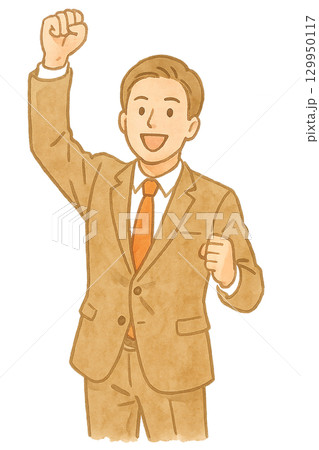 スーツを着た笑顔の男性会社員、茶系のイラスト