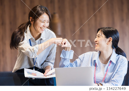 ハイタッチをするビジネスウーマン