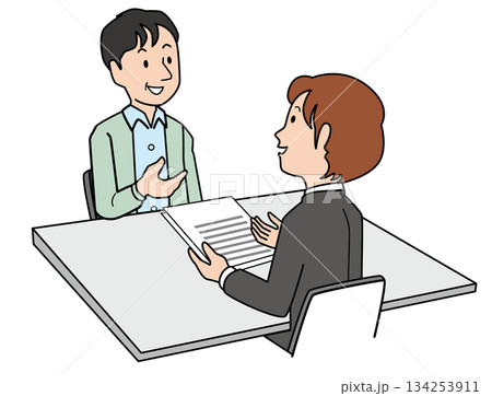接客を担当するビジネスマンと相談する客の男性との打ち合わせ|ビジネスシーン