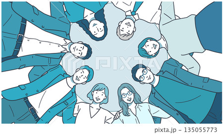 手をつなぎ輪になる多様な人々 人と人のつながり・協力のイメージ