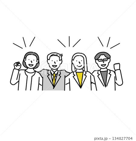 ガッツポーズ サムズアップする会社員 仕事仲間 チームワーク