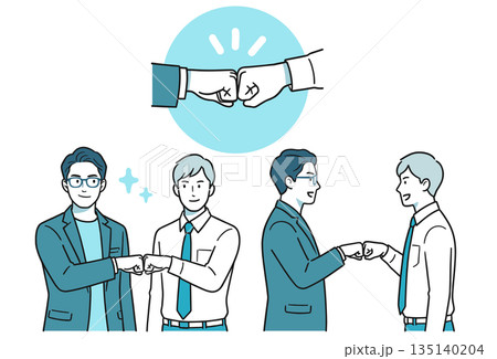 拳を合わせてお互いを認め合うビジネスパーソンのイラスト