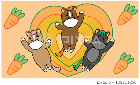 仲間と一緒に喜びを分かち合う動物キャラクターのイラスト