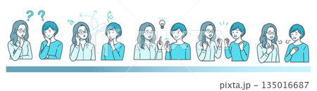 イラスト素材: オフィスで働くビジネスチームの表情とポーズセット