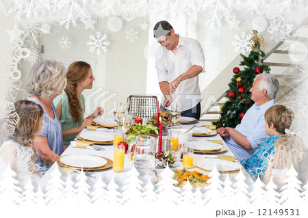 Composite image of father serving christmas...[12149531]の写真素材は、ふるまう、食事、ご飯のタグが含まれています。この素材はwavebreakmediaさん(No.208479)の作品です。SサイズからXLサイズまで、¥550からご購入いただけます。無料の会員登録で、カンプ画像のダウンロードや画質の確認、検討中リストをご利用いただけます。 全て表示
