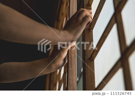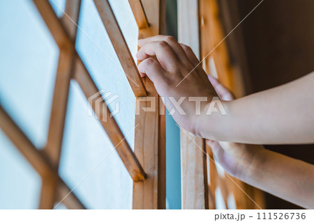 窓際に立つ若い女性
