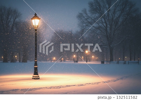 雪が舞い落ちる冬の夜景背景素材 / 静けさと幻想を表現したシーズンビジュアル