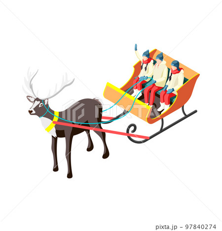サンタとそりに乗って走るフレンチブルドッグ