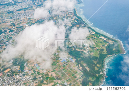 飛行機の窓からみた沖縄