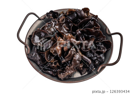 Fresh wood ear mushrooms, perfect for adding unique texture and flavor to your favorite Asian dishes. isolated on white background. top view