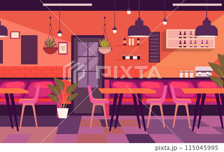 Illustration of Modern Interior Landscape in Cafe Restaurant with Dining Table for Customer