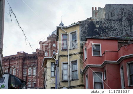 Istanbul city skyline in Turkey, Beyoglu district old houses with Galata tower