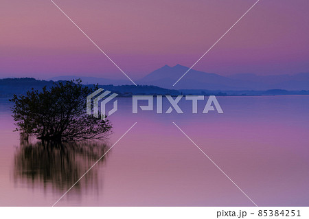 茨城県行方市霞ヶ浦と霞ヶ浦大橋の夕景