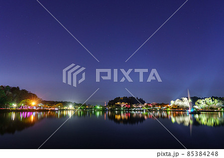 茨城県水戸市街並みの夜景 千波湖リフレクション