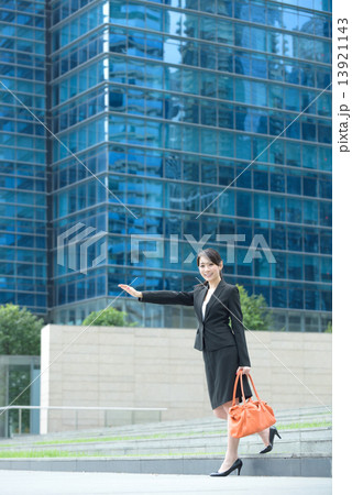 紹介ポーズの女性