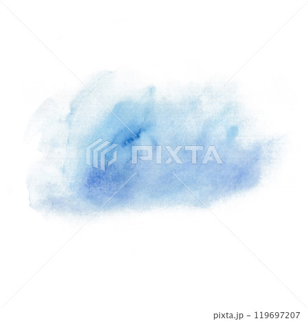 Water splashe, droplets, sea waves in blue, light blue colors. Watercolor fills in handdrawn painted. It will be use as transparent cloud, background of water stains in cat series. This element can be