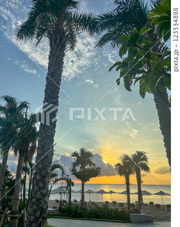ヤシの木と海に沈む夕日