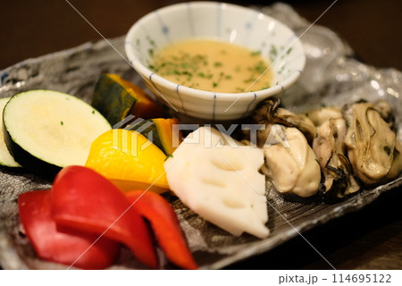 freshly chilled trout arranged on ice with colorful vegetables for seafood market. closeup.