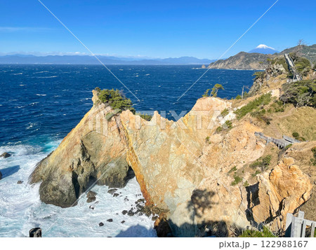 西伊豆町 黄金崎 日本奇岩百景 夕陽に染まる馬ロック