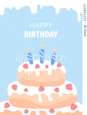 Birthday birthday cake greeting card with a place under the text. Vector illustration of a cake with candles, hand-drawn. A poster for a holiday, an invitation to a party, an anniversary, an event.