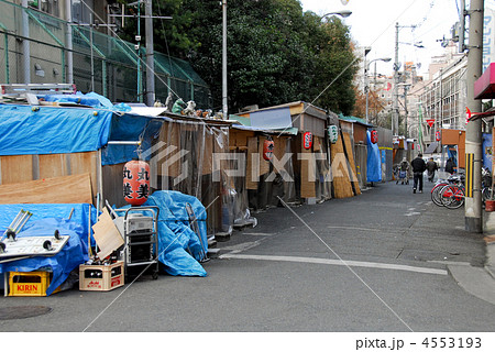 バリケードで封鎖されて数年が経過するあいりん労働福祉センターのある風景