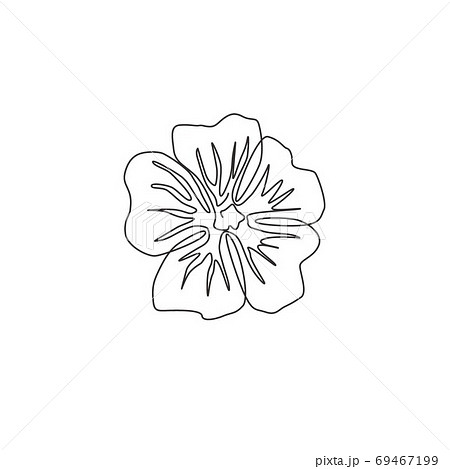 Single one line drawing beauty fresh purple mallow for garden logo