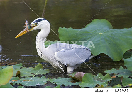 アオサギ 野鳥 水面 捕食