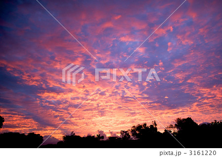 朝焼けでオレンジ色に染まる竹富島の夏の空