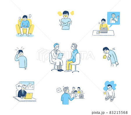 体調不良の男性 さまざまなシーン セット
