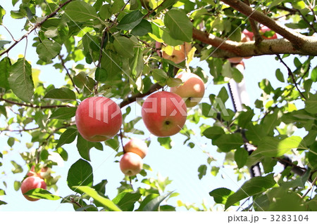 果樹園の美味しいリンゴ品種の秋映(あきばえ)
