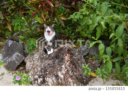 威嚇じゃないよ!地域猫のアクビの一コマ