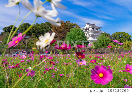 旭城と満開のコスモス〈愛知県尾張旭市〉