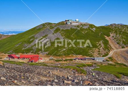 岐阜県(長野県)の乗鞍岳(朝日岳)2850m付近から摩利支天岳、肩の小屋方面を見る