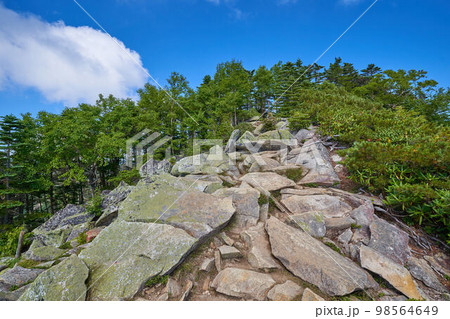 長野(山梨)の金峰山に向かう大ナギのガレ場から朝日岳方向(立ち枯れの登山道)