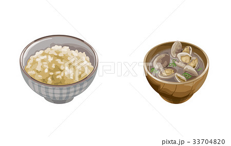 あさりの味噌汁 和食の手描き水彩イラスト素材