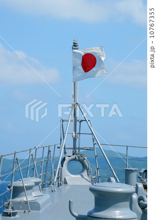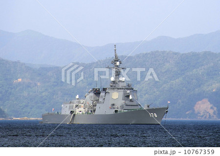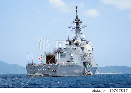 イージス艦あしがら船尾日章旗と海上自衛隊の艦船