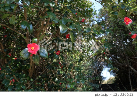 ツバキ咲く遊歩道を歩く 足摺岬 (高知県 土佐清水市)