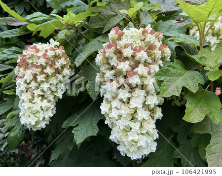 円錐形の花序のカシワバアジサイ