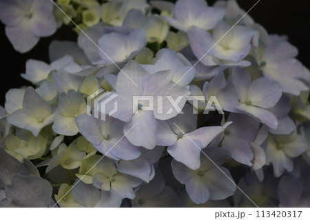 星空をちりばめたような額咲き紫陽花の花