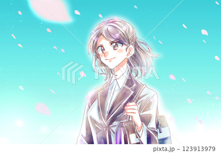 振り向くスーツの男性会社員 笑顔 桜吹雪