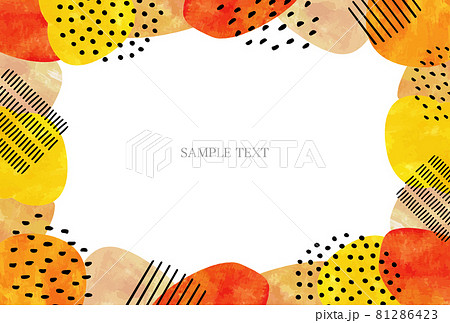 秋色 手描き模様のフレーム 橙 (水彩風ベクター)