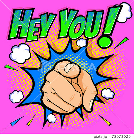 Finger point icon in comic style. Hand gesture cartoon vector illustration on white isolated background. You forward splash effect business concept.
