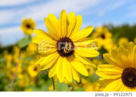 晴天の元のヒマワリ・向日葵、向日葵畑