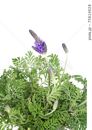 春の光を浴びる紫のデンターラベンダーの花