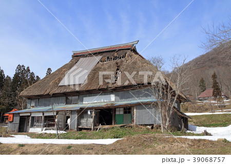 茅葺屋根の廃屋