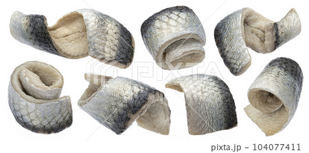 Salted herring rolls isolated on white background with clipping path, full depth of field