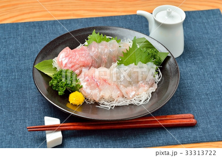 注意)お皿部分にレタッチ痕が残ります。浜名湖舞阪港産の甘鯛(アマダイ、あまだい)のお刺身。
