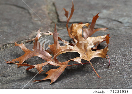 ピンオーク(アメリカガシワ)の紅葉した落ち葉 形がユニーク