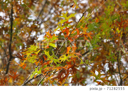 ピンオーク(アメリカガシワ)の紅葉 葉の形がユニーク